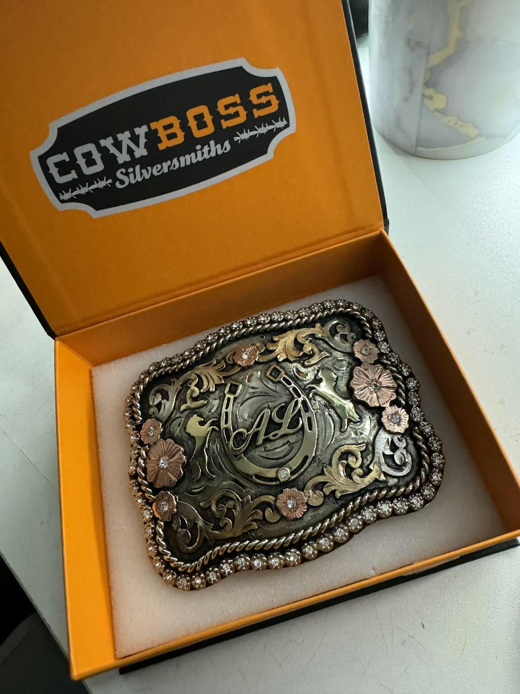 For instance, if the buckle in the display features a team roper figure as its symbol, but you’d prefer a barrel racer instead, you have the option to select a barrel racer figure from our curated list of 3D figures, or you can upload your own barrel racer image by selecting the “Upload Your Own” option. The same applies to the lettering, stones, etc. What's displayed on the custom buckle is just a template, so feel free to make it your own!